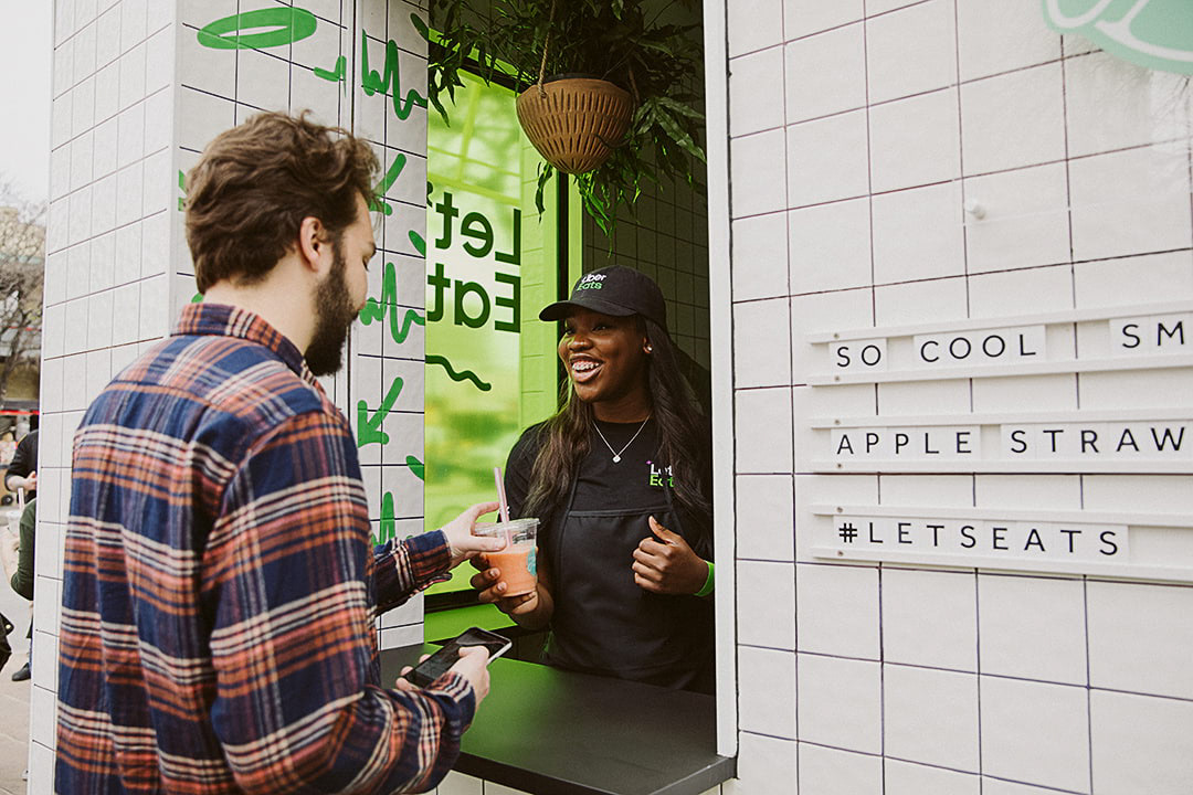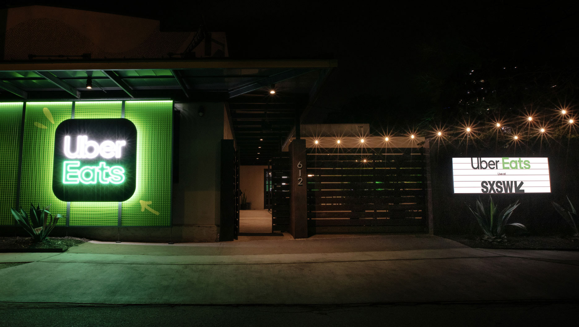 A separate food-takeaway vendor window built into a historic Austin mainstay with alternating local food vendors providing drops.