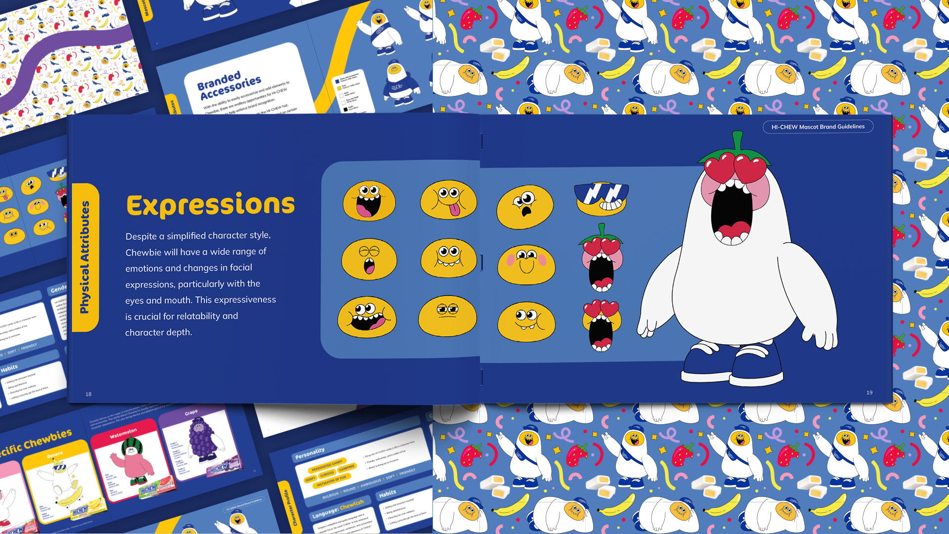 Description \\ Partnering with HI-CHEW's parent company to create an official mascot that "embodies everything HI-CHEW represents - Joy, Excitement, and Chewiness! Including billboard ads in Times Square, web and digital integration, and packaging.